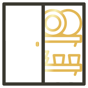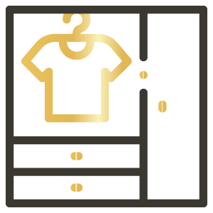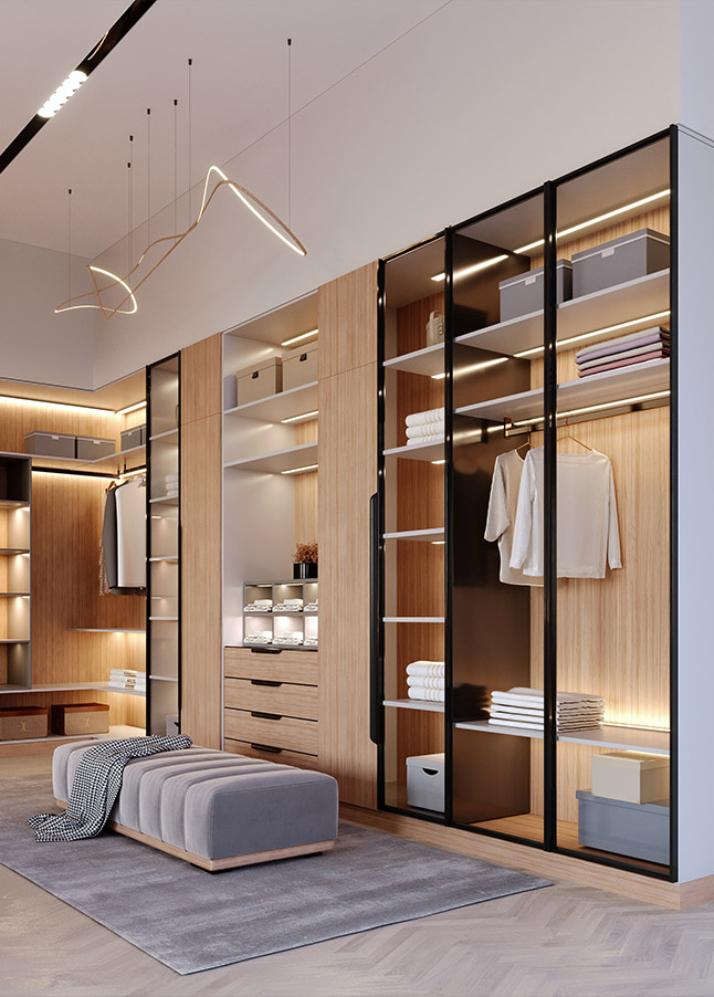 Functional interior solutions for wardrobe, kitchen, and storage.